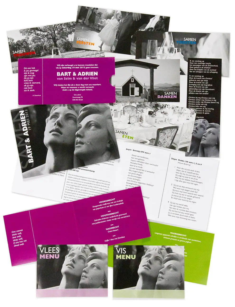 Uiteraard helemaal naar je wens en idee. Heb je die nog niet? Dan gaan we die ontdekken. Altijd een uniek ontwerp en persoonlijk contact met de vormgever. Zo maken wij de mooiste trouwkaarten voor je.